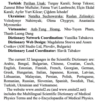 Từ điển khoa học VLYK do Prof Tabakov (IOMP) chủ trì – hiện bao gồm 32 ngôn ngữ bao gồm tiếng Việt: http://www.emitel2.eu